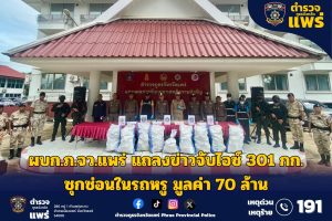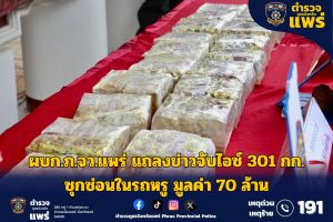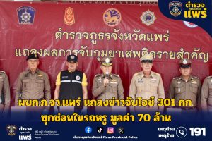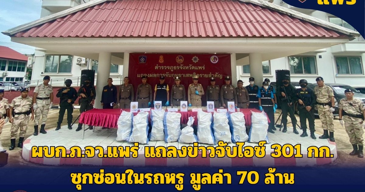 ผบก.ภ.จว.แพร่ แถลงข่าวจับไอซ์ 301 กก. ซุกซ่อนในรถหรู มูลค่า 70 ล้าน