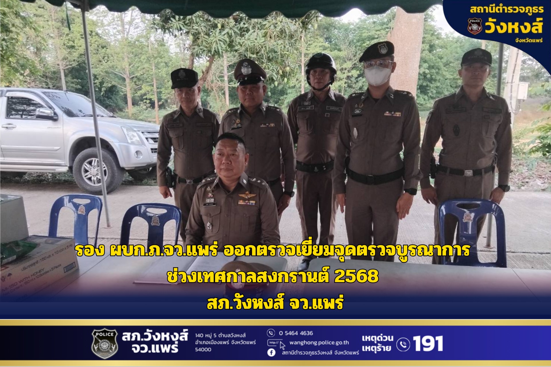รอง ผบก.ภ.จว.แพร่ ได้เดินทางมาตรวจเยี่ยมจุดตรวจบูรณาการในช่วงเทศกาลสงกรานต์ 2568