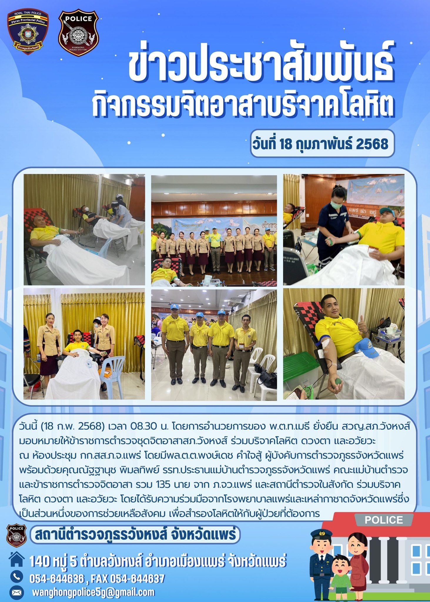 เข้าร่วมบริจาคโลหิต ณ ห้องประชุมกองกำกับการสืบสวนตำรวจภูธรจังหวัดแพร่